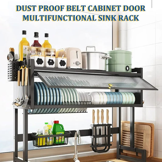 VBM 2 Tier Over Sink (65 Cm) Dish Drying Rack with Cabinet Door, Large Bowl and Dish Drainer for Multifunctional Storage Kitchen Counter Organization Sink Dish Rack Display
