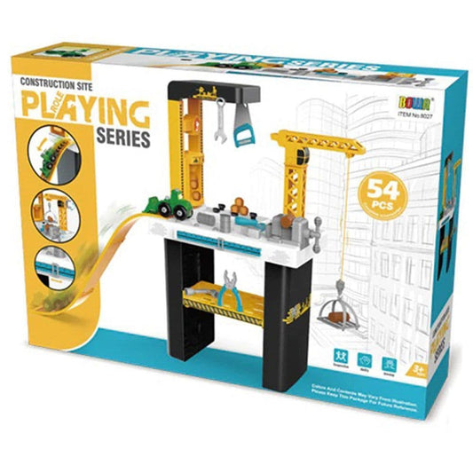Construction site toy workbench with vehicle plus play tools & accessories 54pc set